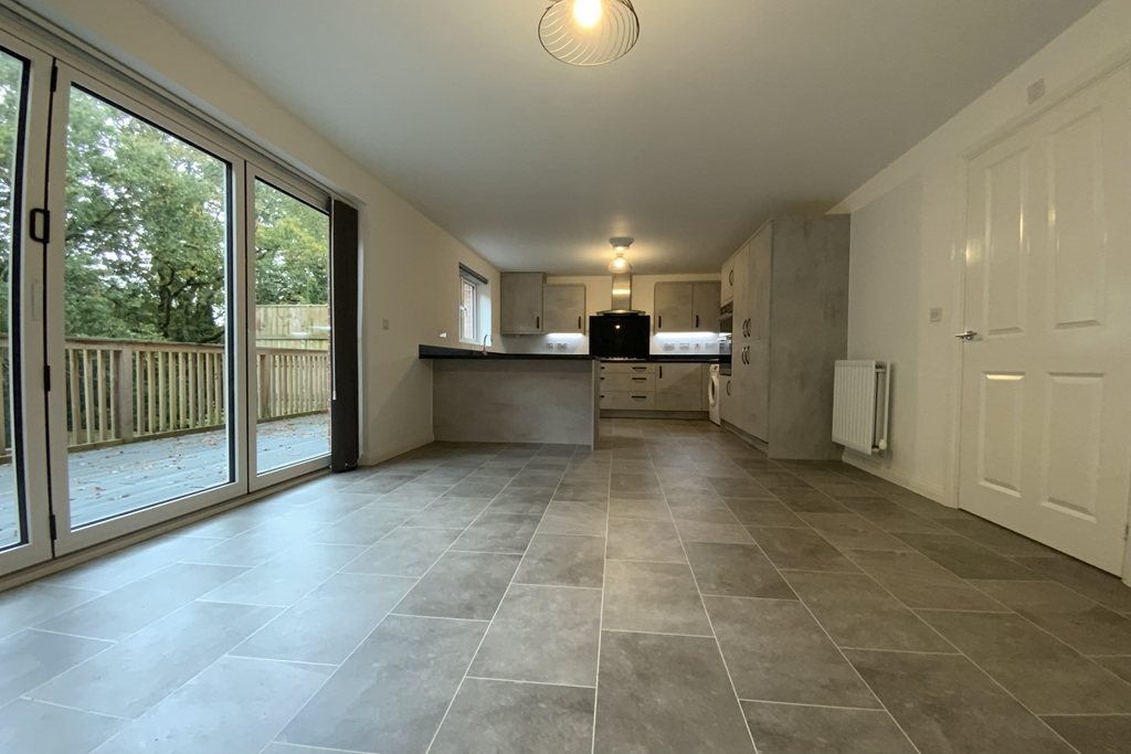- Kitchen with breakfast bar, built in 5 ring gas hob, electric double oven ,fridge Freezer, dishwasher and washing machine/ dining room with blindfold doors leading to decking