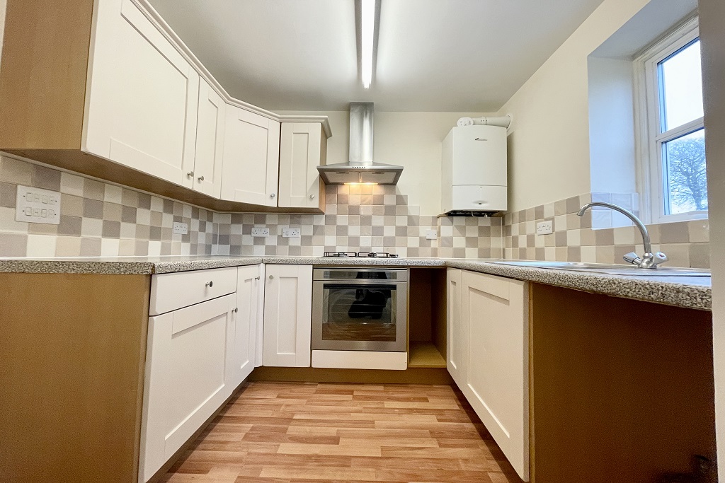 - Kitchen with gas hob and electric cooker, plumbing for washing machine