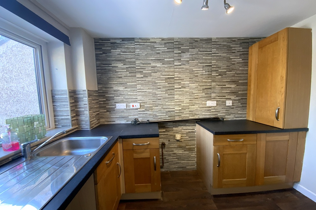 - Kitchen with an electric cooker point and plumbing for a washing machine