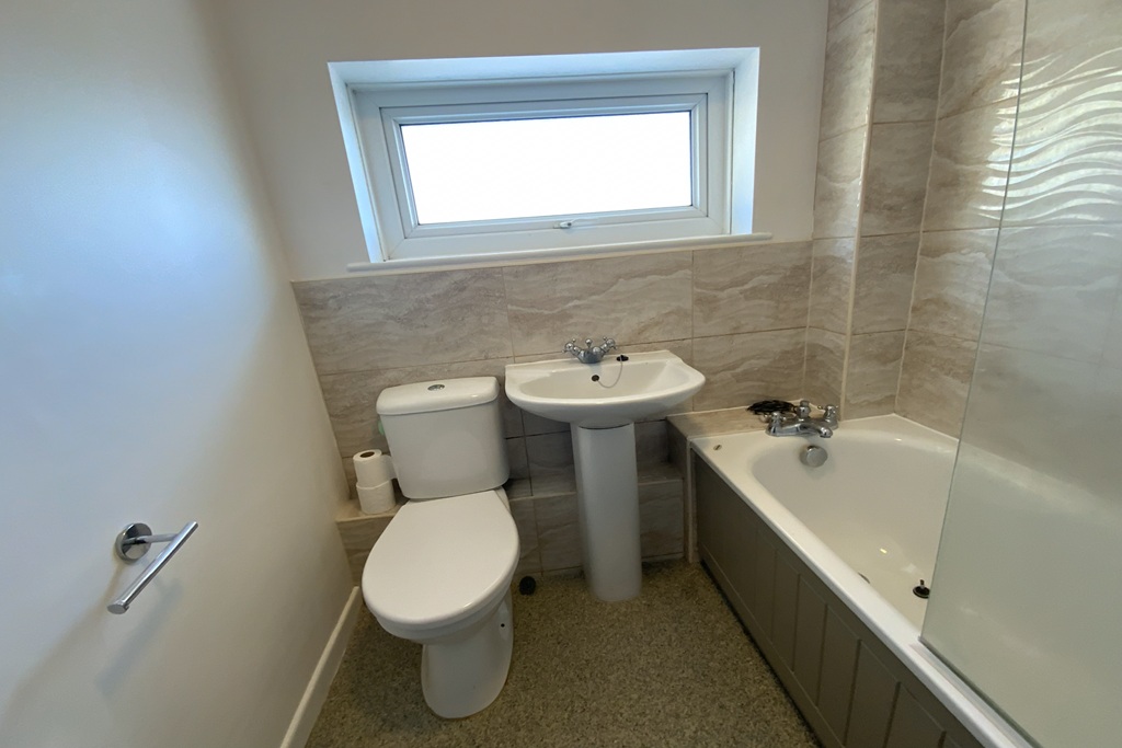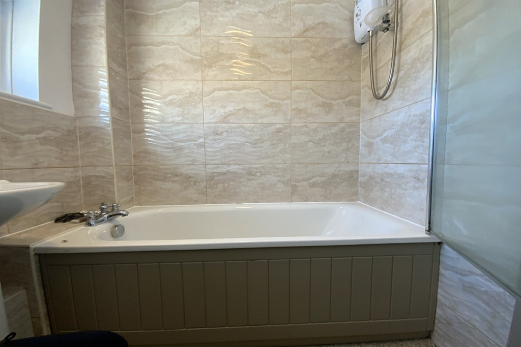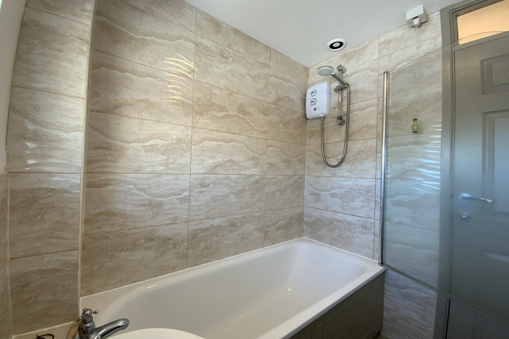 - Bathroom with an electric shower over the bath