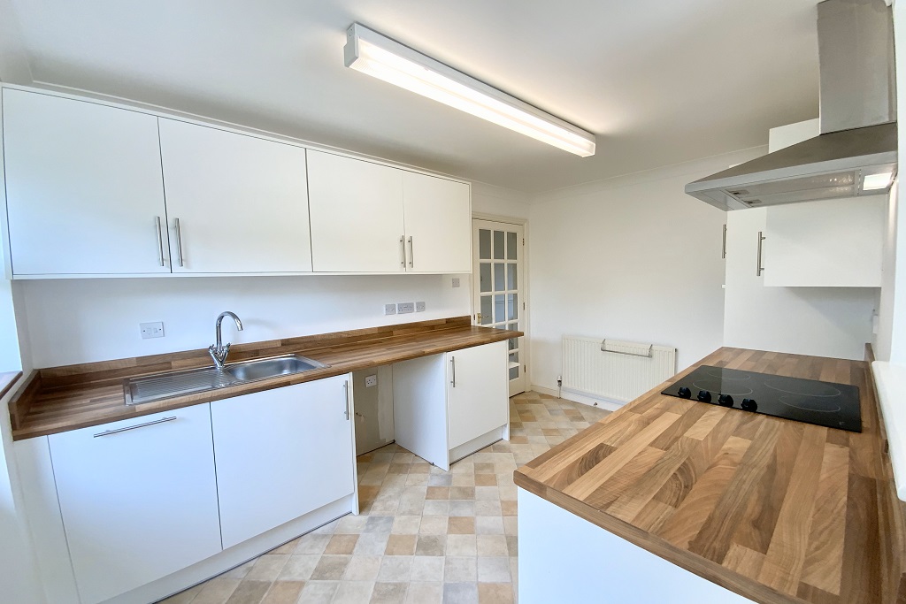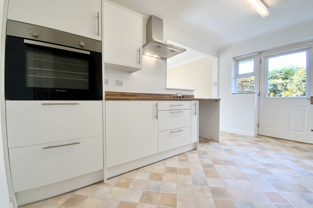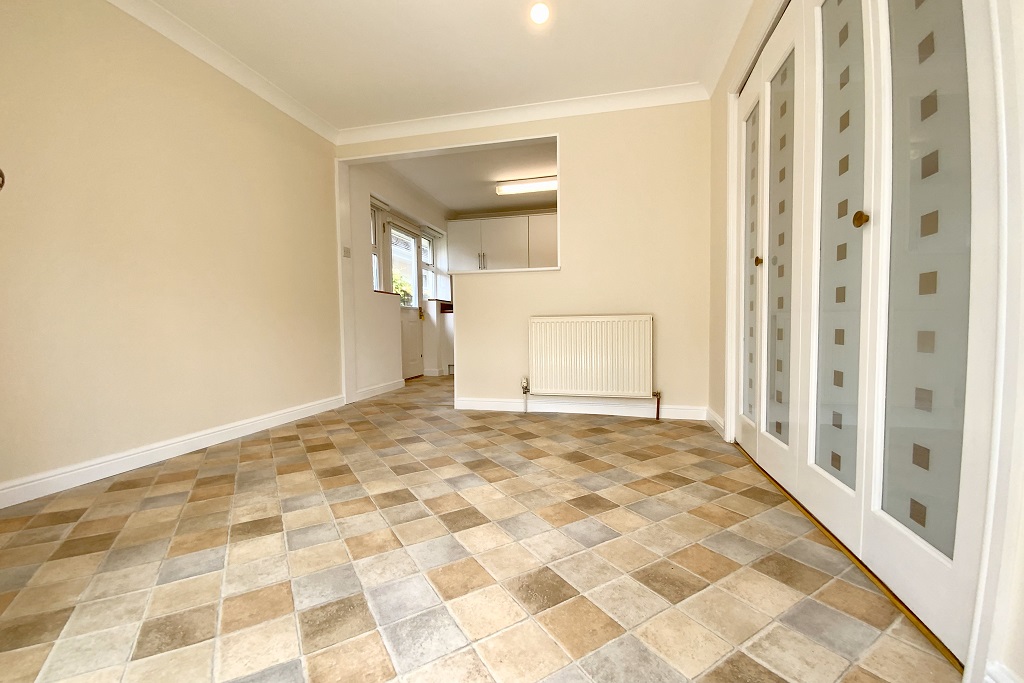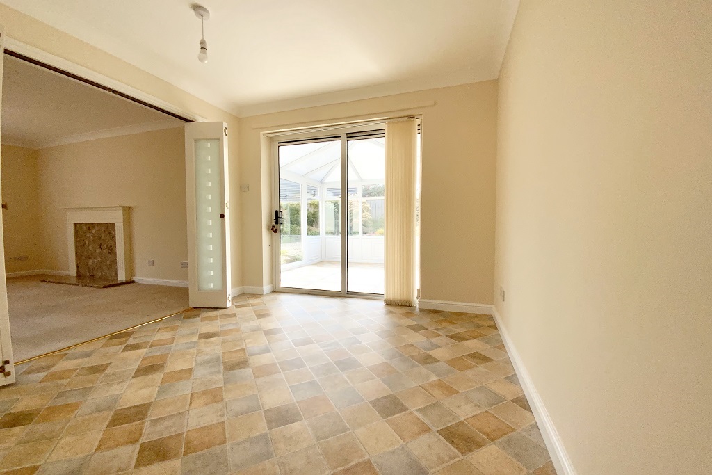 - Open plan kitchen/dining room with electric oven, hob, freezer and slimline dishwasher