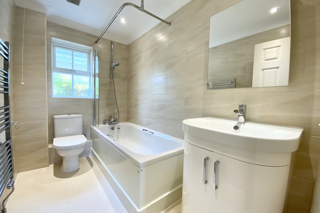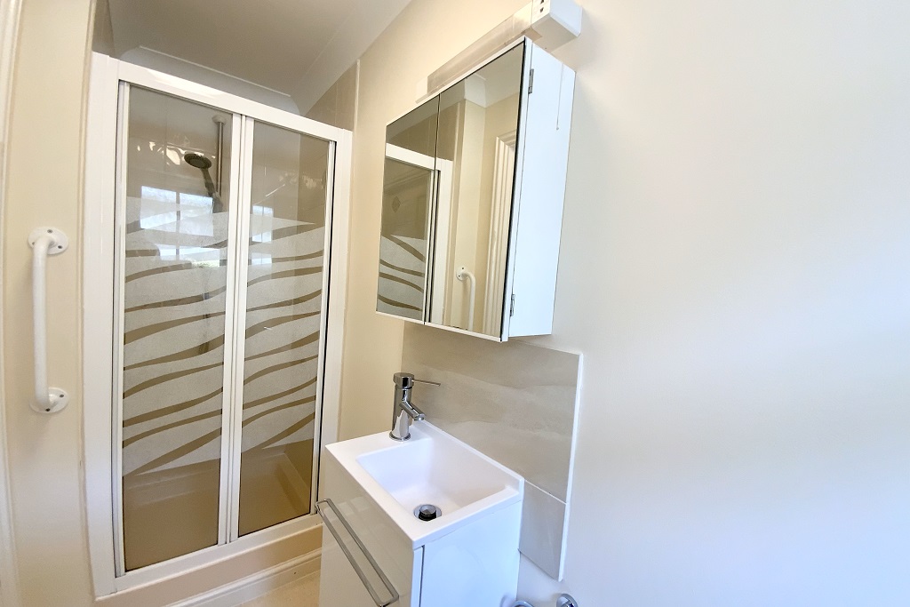 - Bathroom with on tap shower over bath and heated towel rail