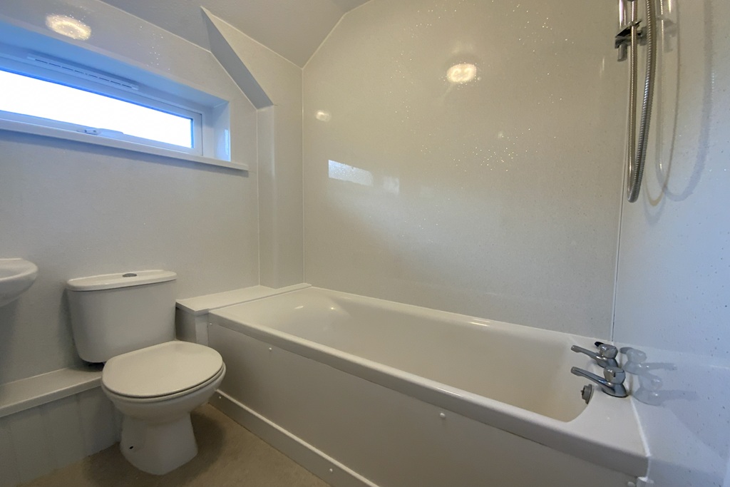 - Bathroom with an electric shower over the bath